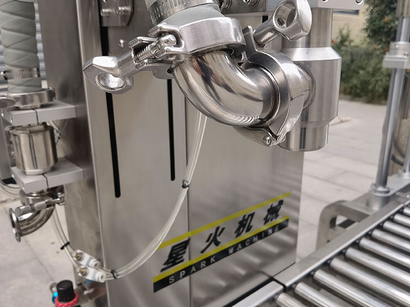 工作人員將所需灌裝的容器放置在稱臺上,確保桶口朝上,并在25升灌裝旋蓋設備上進行參數規格的設定,提前備至好灌裝原材料,系統將會自動偵測到桶的定位,灌裝槍智能插入桶口,自動去皮后,打開灌裝槍以及球閥組開始進行灌裝,在灌裝過程中,化工液體稱重灌裝機會通過大小球閥組以及灌槍的分段控制,實現快速、精準的統一化克重信息,在化工液體達到預設的目標值時,灌槍將自動關閉并升至桶外,此時滴漏盤承接灌裝頭底部的漏液,保障物料的不浪費和容器桶的干凈整機,隨之25升灌裝旋蓋設備將進入自動旋蓋區域。