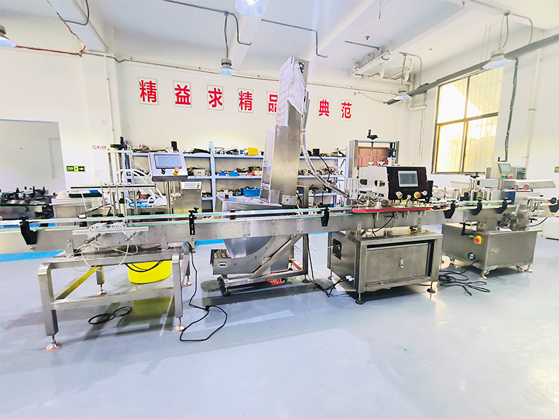 直線式旋蓋機為一條多臺機械設備的聯動生產機械,它集中了輸送機、灌裝機、上蓋機、旋蓋、夾蓋機、貼標機等自動化設備,形成了流水生產線設備。整套灌裝旋蓋機械能夠從容器的輸送直至旋蓋結束的全部內容,都運用這款設備來完成。